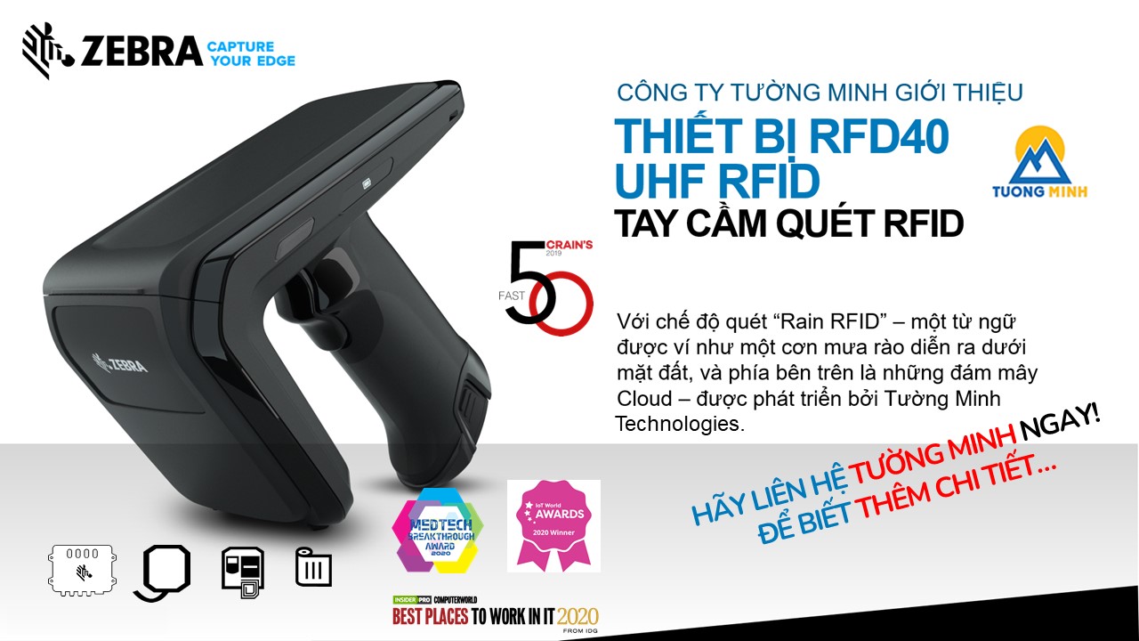 Công Ty TNHH Công Nghệ Tường Minh chuyên kinh doanh nhập khẩu phân phối máy đọc Zebra RFID RFD40 mới nhất tại thị trường Việt Nam.