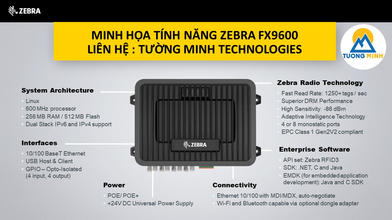 Công Ty TNHH Công Nghệ Tường Minh chuyên môn tư vấn, cung cấp đầu đọc Zebra RFID FX9600 tại Việt Nam.